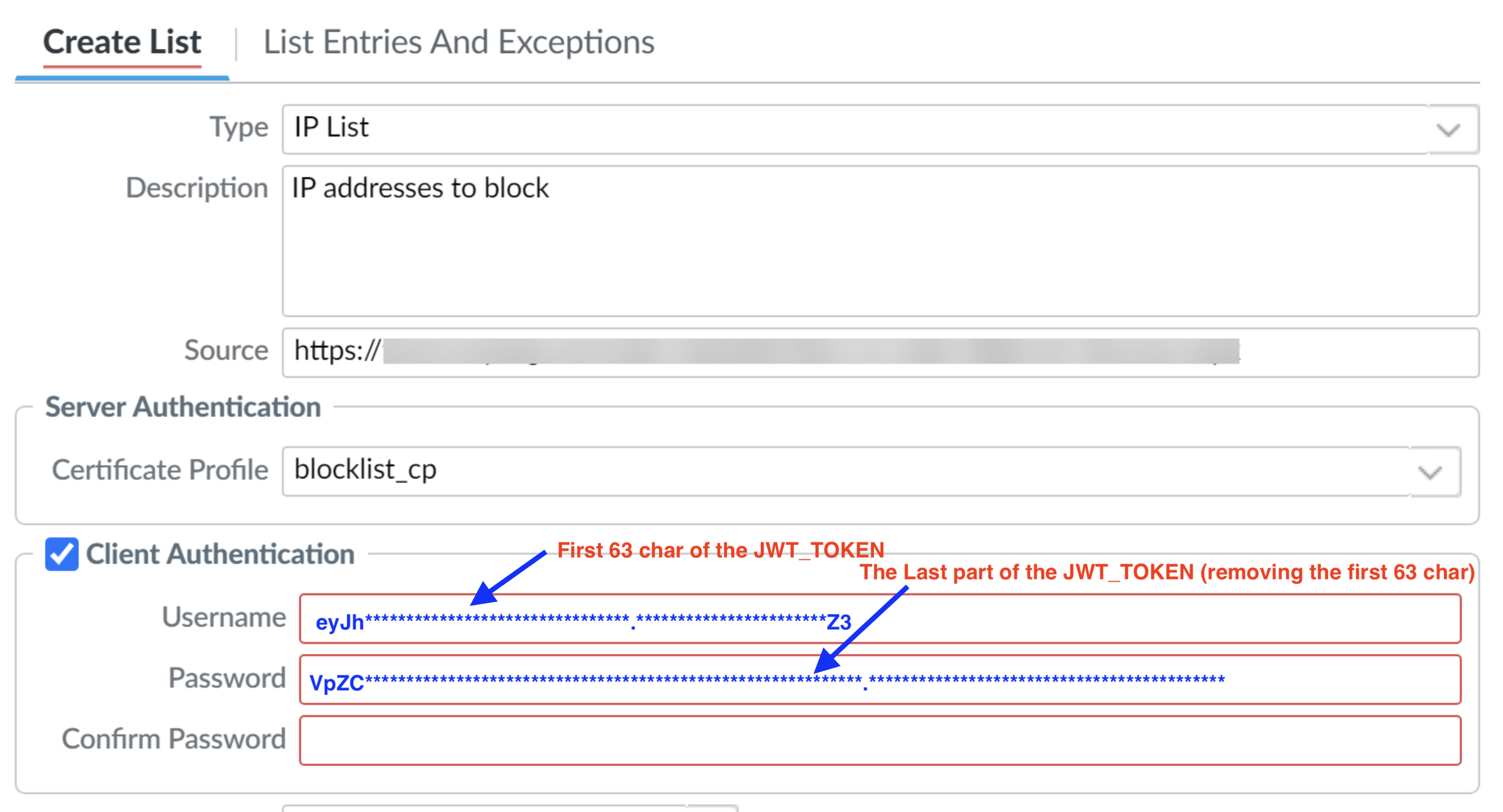 - In the Palo Alto Web UI, go to Objects → External Dynamic Lists.