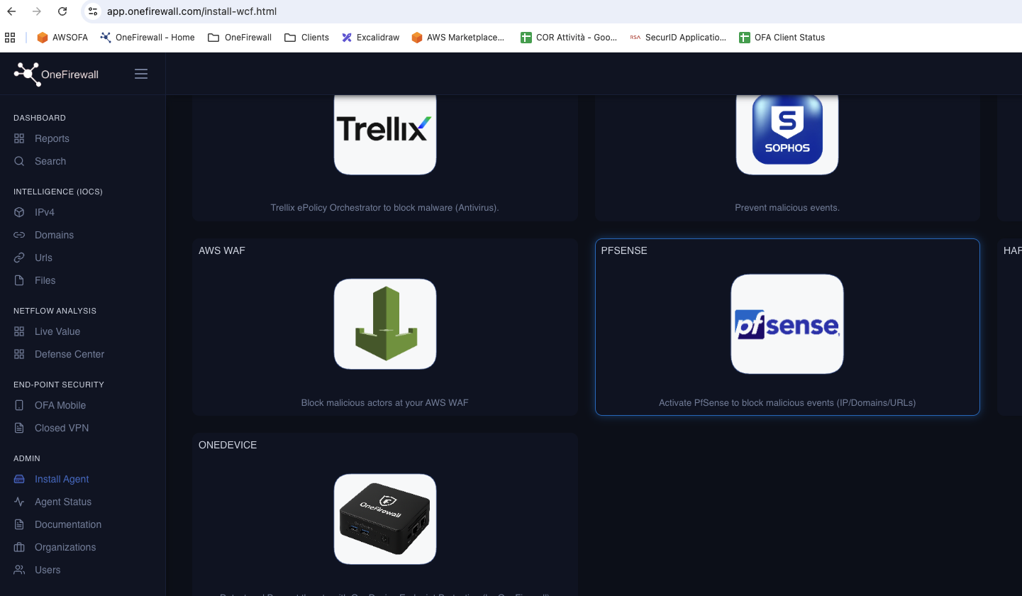 Go to the OneFirewall Alliance Dashboard -> Install Agent, activate pfSense license, and save the configuration setup provided